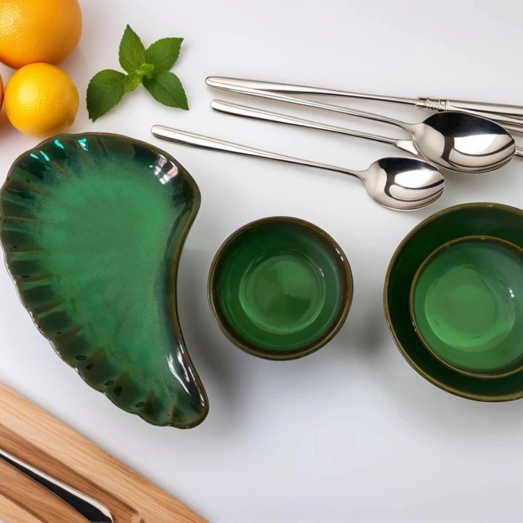 Made from high-fired ceramic and finished with a smooth, lead-free glaze, the set is both durable and safe for regular use. Its uniform aesthetic ensures a cohesive presentation, whether displayed on a hotel buffet or laid out for an intimate dinner at home.