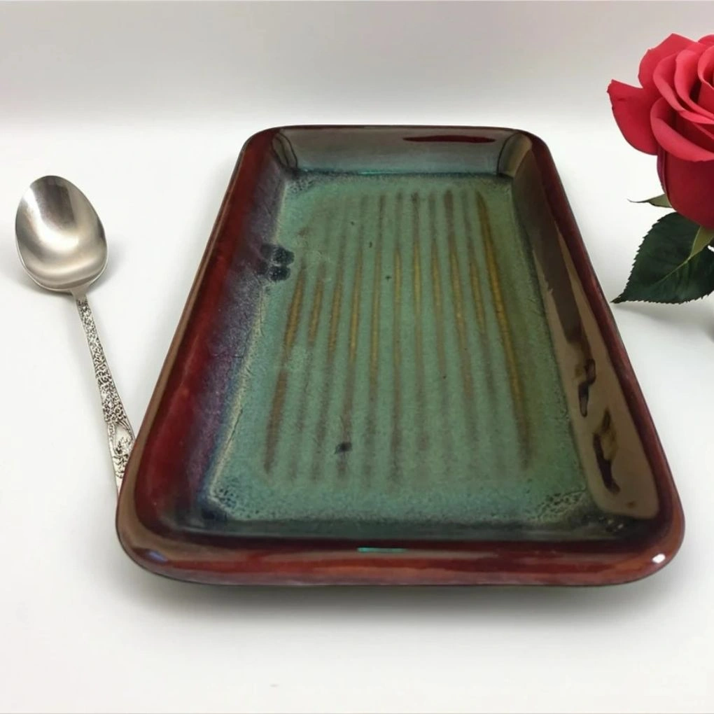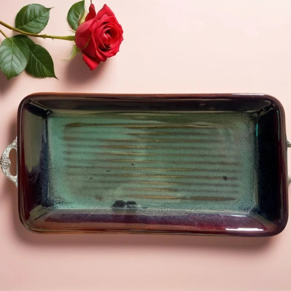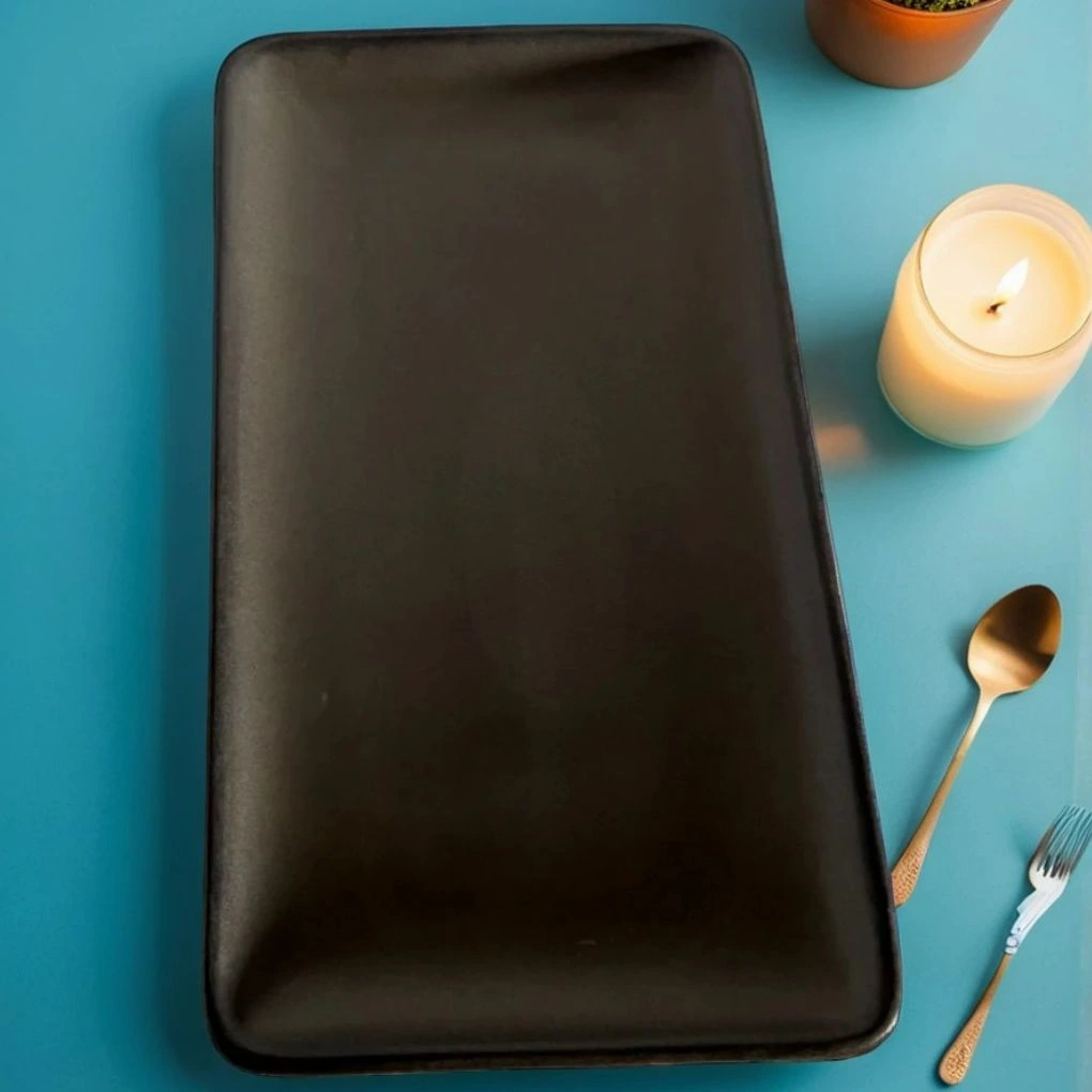 Crafted with high-fired ceramic, it balances strength with subtle elegance. The food-safe glaze gives it a smooth, non-porous finish that’s easy to clean and resists staining over time. With gently raised edges, items stay in place, making it perfect for serving on couches, coffee tables, or buffet lines.